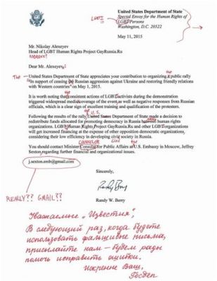 Изданието публикува наскоро факсимиле от писмо с дата 11 май, за което твърди, че е изпратено от Държавния департамент до Николай Алексеев - основател и ръководител на руския правозащитен проект GayRussia.Ru за хора с нетрадиционна сексуална ориентация.