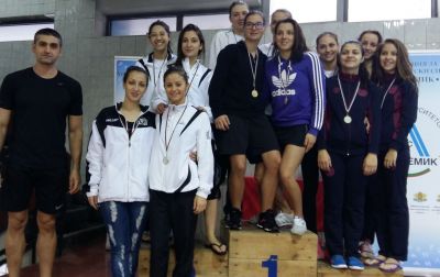 Представителната щафета на МУ-Варна в състав Антония Стоянова, Симона Борисова, Цветелина Кирязова и Велина Богданова взе участие в 4 по 50 м свободен стил, където зае почетното второ място на националния шампионат, а победата извоюваха представителките на Национална спортна академия. В съчетана щафета 4 по 50 м победител е отборът на НСА, второ място заеха момичетата от Пловдивски университет, а отборът на МУ-Варна се окичи с бронзовите медали.