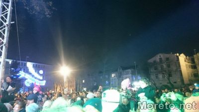 Кметът Иван Потних по традиция се обърна към събралото се множество и след това заедно със сина му Николай включиха официално празничните светлини. Преди това стотици варненци се забавляваха с песните и танците на децата, изпълнили сцената край елхата.