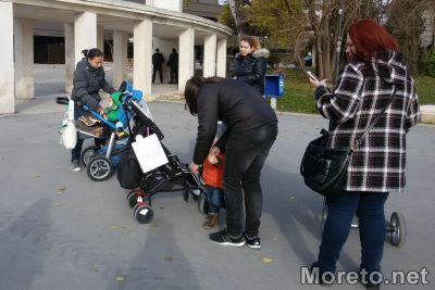 Едва 7-8 майки излязоха да протестират днес във Варна с искане за по-добри условия за отглеждане на децата им, предаде репортер на Moreto.net. Въпреки това младите жени не се разколебаха да останат на входа на Морската градина, за да покажат, че искат повече пари за майчинство, както и редица други промени и облекчения.
