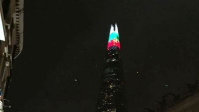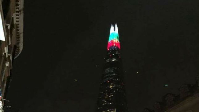Най-високата сграда в Лондон, във Великобритания и в ЕС - небостъргачът The Shard, грейна в в цветовете на българското национално знаме, съобщи сайтът „Новини Лондон".