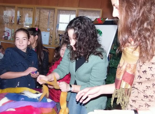 Те се включиха със своя труд, талант и въображение в работилницата „Вълнени топки за Коледната елха". Децата се трудиха под ръководството на Надежда Антонова-Тодорова, която е логопед в училището и майстор на нетъкан текстил към Задругата на майсторите, и на Станислава Петрова – педагогически съветник. Мекият и нежен допир на вълната бе използван за създаването на красота и хармония.
