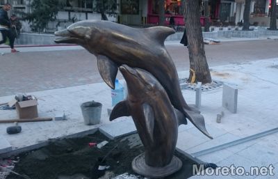 Метална скулптура на двойка делфини се появи на новоремонтирания участък от варненския център между Севастопол и Морската градина. Творбата е част от оформлението на общото пространство и вече поражда симпатии у минувачите. Автор на скулптурата е Венцислав Марков. Намира се в отсечката пред хотел „Черно море“, видя репортер на Moreto.net.