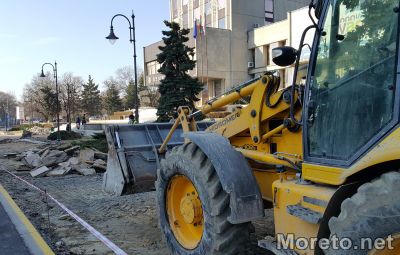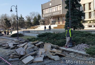 Започна подмяна на плочките на тротоарния участък между ул. „Братя Миладинови“ и сградата на Община Варна, видя репортер на Moreto.net.