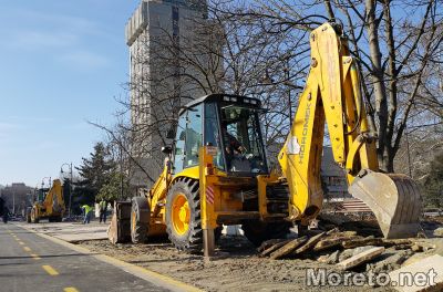 Настилката в района бе изпълнена с неравности и натрошени плочки. След подмяната трасето, през което вече преминава и велоалея, ще придобие завършен вид.