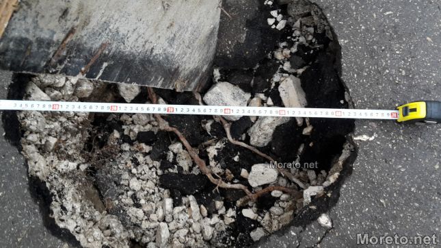 Огромна дупка се отвори на улица "Димчо Дебелянов" 1 в квартал "Аспарухово". Това сигнализира на редакционната поща на Moreto.net наш читател.