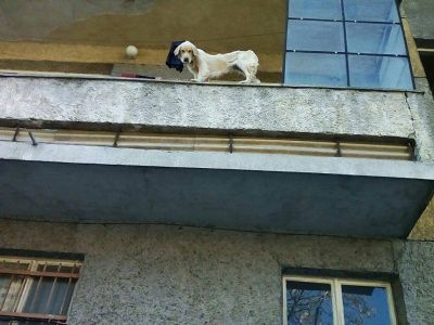 „Кучето на снимката е паднало от балкона, съседи са го прибрали отново в апартамента, където го гледа едно семейство. В жилището има още едно малко куче. Видимо не се грижат за тях, голямото куче е порода голдън ретривър, слабо е като скелет. Кучетата стоят на тази тераса без храна и вода. Не ги разхождат. Кучето намира спасение единствено като скочи от балкона. Ако се случи това за втори път, може би ще е пагубно за него. Търсим съдействие двете кучета да бъдат изведени от този неподходящ за тях дом преди да е станало прекалено късно.“, пише Петрова.