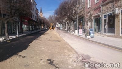 Асфалтирането на ул. „Преслав" в участъка до Областна управа тече днес, видя репортер на Moreto.net.