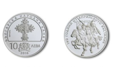 Българската народна банка пуска в обращение сребърна монета „140 години от Априлското въстание“. На лицевата страна на монетата в горната част е изобразен Поибренският кръст с надпис околовръст „БЪЛГАРСКА НАРОДНА БАНКА“; в долната част надписът „10 ЛЕВА“ е разделен с емблемата на БНБ (с годината „1879“ върху лентата), а под него е годината на емисията „2016“.