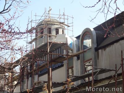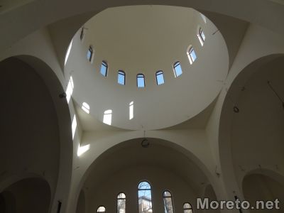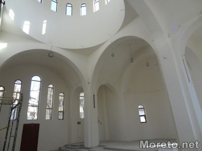 Работници вече са направили фина като стъкло мазилка вътре в църквата. Основата е специална, за да послужи за база за стенописите. Очаква се скоро иконописци да започнат да изографисват вътрешните стени, но тепърва ще трябват средства за направата на иконостас, разказаха от храмовия комплекс.