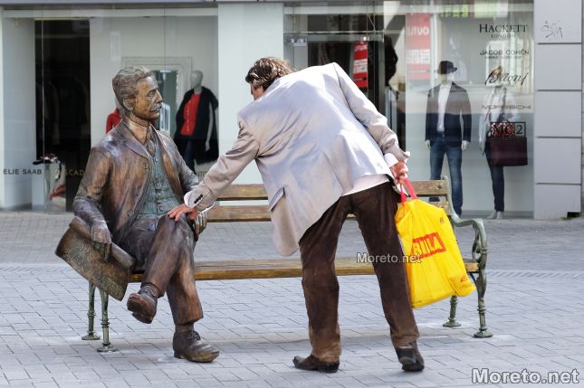 Добре е, че не гледа към Аквариума с черния креп върху орнаментите на фасадата или към сградата на бившата Софийска банка. Щяхме да имаме плачеща скулптурна фигура на пейка.