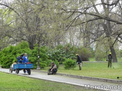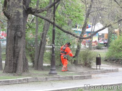 В напреднал етап е и косенето на тревните площи в Морската градина. Дейностите стартираха дни след дезакаризацията в Приморския парк.