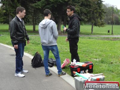 Подготовката на моделите, които бяха изстреляни в небето на стотици метри височина, е дело на ръководителя на групата от четирима ученици Костадин Левков.