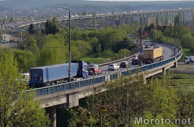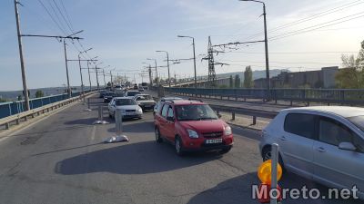 Аспаруховият мост пак се задръсти, никой не работи в затворения участък