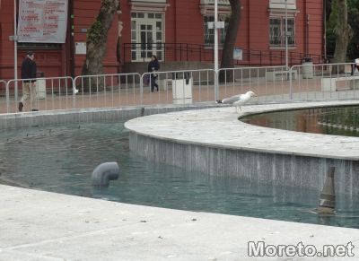 Многобройните чайки, които обитават района, използват водата за приятна освежаваща и разкрасяваща процедура, видя репортер на Moreto.net.