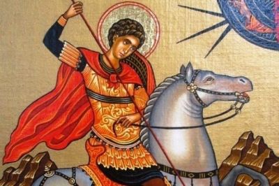 На този ден Православната църква почита паметта на един от най-големите български светци - Св. Георги Победоносец - покровител на овчарите и стадата. Заедно с Великден се смята за най-големия пролетен празник. Свети Георги е един от най-почитаните светци в Източноправославната църква. На иконите е е изобразяван винаги на кон, а в краката му лежи убитата от него ламя. Великомъченик св. Георги Победоносец е живял в малоазийската провинция Кападокия по времето на римския император Диоклетиан /284-305/. Постъпва съвсем млад във войската и проявява завидни военни способности. На 20-годишна възраст получава чин на военен трибун. Страстен привърженик и защитник на Христовата вяра, Георги е хвърлен в тъмница, подложен е на жестоки изтезания и е обезглавен през 288 г. Според житието, недалеч от гроба му се появявал змей, който опустошавал околността. Светецът успял да порази с копието си чудовището. Оттогава се ползва със славата на един от най-изявените змееборци (драконоборци) и конници в християнството, поради което е избран за светец - покровител на войната и войската