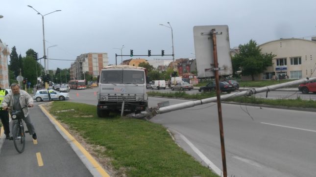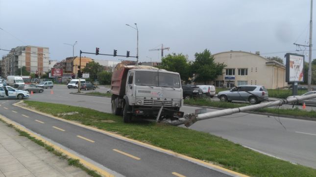 Камион събори уличен стълб на бул. „Сливница" във Варна (снимки)