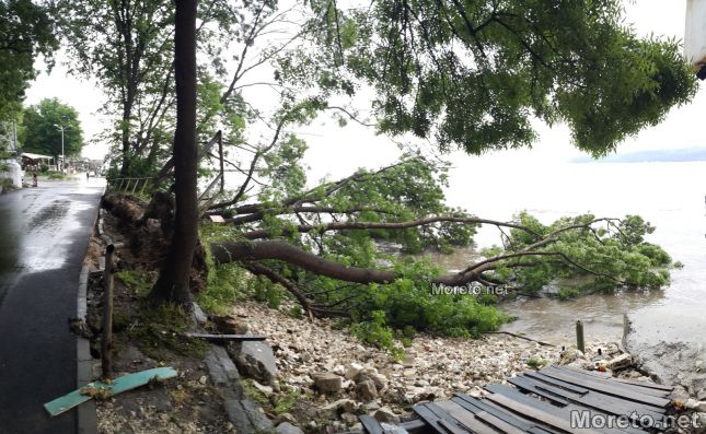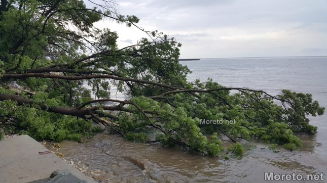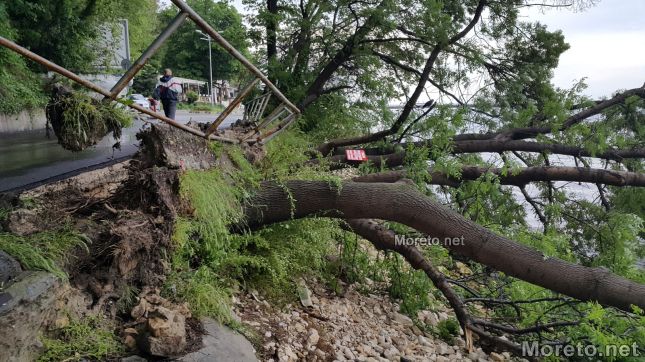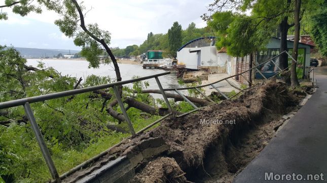 Големи дървета са изкоренени след разразилата се буря над Варна в района на Рибарския плаж. Пропитата с влага почва заради обилните валежи на практика е надигната от корените, а стволовете са се стоварили над водата. Няма информация за пострадали хора или увредени автомобили в района, както и на други места в града, където също са регистрирани сигнали заради лошото време. Това съобщиха от пресцентъра на полицията за Moreto.net. Оттам допълниха по повод появилата се на места информация за свлачище в района на крайбрежната алея, че няма постъпили подобни сигнали.