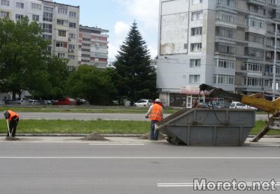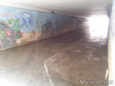 Заграден с обезопасителни ленти днес по обед беше и подлезът на бул. "Осми Приморски полк" малко преди пътния възел до "Пикадили парк". Заради събралите се по пътната артерия кални наноси, работници от общински фирми бяха повикани да почистят платната.
