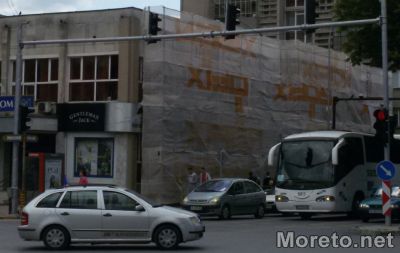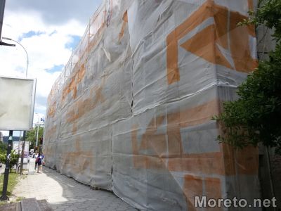 Работници монтираха строителни скелета и поставиха предпазни платнища заради предстоящия ремонт на фасадата на Младежкия дом във Варна, видя репортер на Moreto.net.