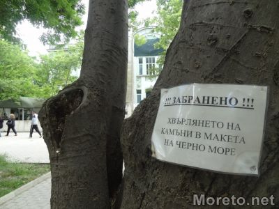 Със захвърлени стари обувки, клони, листа и кал е покрито дъното на триизмерния макет на Черно море до сградата на Аквариума в Морската градина във Варна, видя репортер на Moreto.net.
