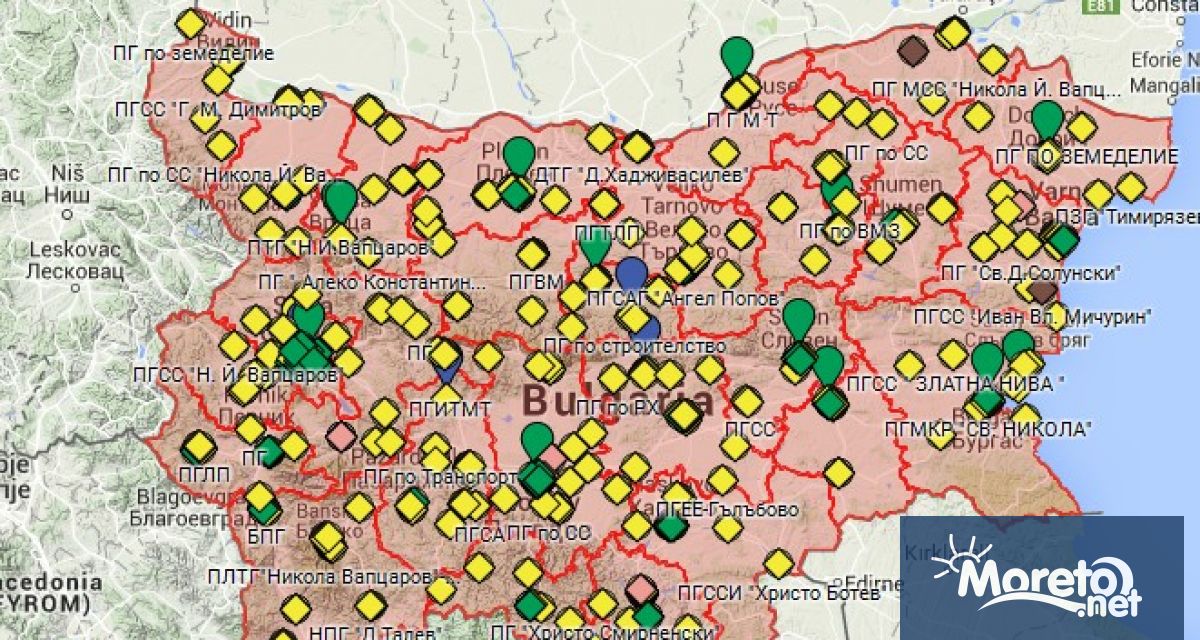 Карта на професионалните гимназии в България, включително и тези, които предлагат дуално обучение, публикуваха от Министерството на образованието, научи Moreto.net.