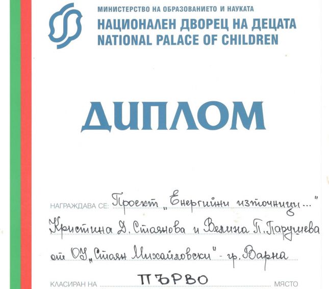 Момичетата влязоха в съревнование със свои връстници от цяла България, включително и с ученици от Румъния. Велина и Кристина писаха проект на тема „Енергийни източници – видове, възможности за развитие на алтернативни енергийни източници”, с който впечатлиха журито.