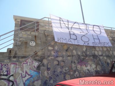 Освен призива за заминаване, някой беше написал на транспаранта и "...имате ли памперс".
