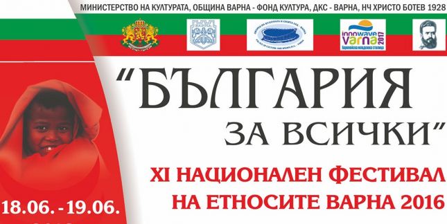 Традиционният XI Национален фестивал на етносите „България за всички” ще се проведе и тази година във Варна, научи Moreto.net. Той ще се проведе в два дни, като за 18 юни в програмата е предвидено дефиле на участниците, което ще се състои от 19:00 часа и ще премине от входа на Морската градина до летния театър, където от 20:00 часа ще се състои концерт.