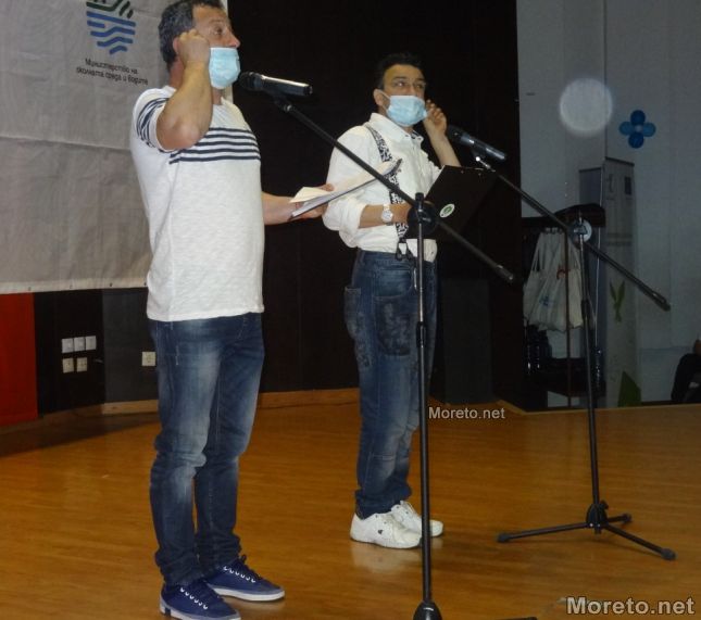 Двамата актьори, които влязоха в ролята на екопосланици, дегизирани с хирургически маски на лицата, успяха да разсмеят публиката и едновременно с това да напомнят за това колко полезно е да се рециклира и да се пази природата чиста.