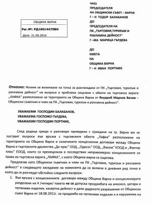 Концесионният договор на "Лафка" във Варна, прехвърлянето му, както и анексите към него е поискал от общинската администрация официално днес съветникът от БСП Януарий Вичев, съобщи той за Moreto.net.
