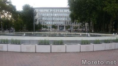 Оградиха градския фонтан във Варна с кашпи (снимки)