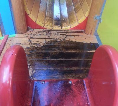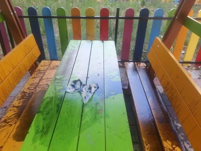 Една от новите детски площадки в квартал „Чайка“ е обилно залята и намазана с петролни продукти, жалва се читател на Moreto.net. Става дума за съоръжение до блок 44.