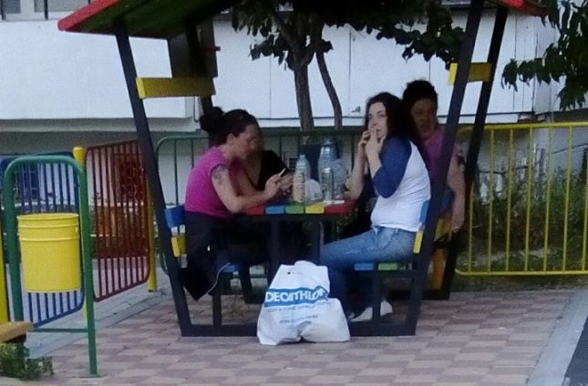 „В коя нормална държава ще видите група от жени да пият биричка и да пушат на детската площадка?", пита инициаторката на подписката, която разполага и със снимки, на които ясно се виждат майки на деца с цигари в ръка и кенове бира, да стоят в беседката над над ОДЗ 11 "Детски свят" в квартал „Владиславово".