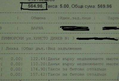 Данъкът и такса смет, които плащаме (виж снимка на фактурата) са в размер като тези в централен район. Само за тази година сме платили 565 лв. след отстъпката от 5%, за двустаен апартамент от които 332лв. е такса битови отпадъци. Ако компетентните органи не предприемат действия и не вземат адекватни мерки за редовно почистване, ще си потърся правата пред по-горни инстанции и по съдебен ред и ще искам да ми се върне платеният данък, пише Марина Попова.