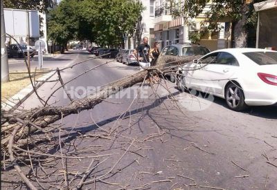 Огромният клон се е стоварил върху бял "Мерцедес", паркиран до кръговото кръстовище в района на ЖП гарата.