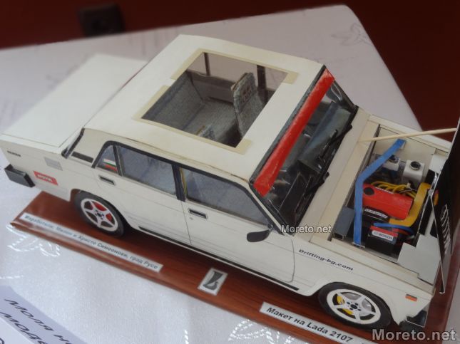 Представените стари автобуси и част от колите пък са направени от хартия. От картон е изработен и макетът на стадион „Георги Аспарухов". Сред експонатите е червен дракон, съставен от хиляди хартиени сглобки.