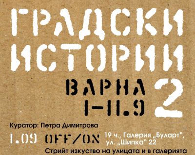 Първата проява ще бъде стрийт арт проектът “off/on”, който ще бъде представен на 1 септември от 19.00 часа в галерия „Буларт” на ул. „Шипка” 22. Проектът условно противопоставя представите за „високата култура” и субкултурата. Резиденция и изложба в класическа галерийна среда смесват и трансформират тези концепции. Куратор е Алекси Иванов, а участниците са Александър Мачев и Николай Чакъров.