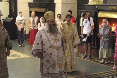 През 1901 г. като помощ от руския цар Николай ІІ от Русия били донесени 42 по-малки и 3 големи икони от Николай Богошкий, а през 1904 г. още осем икони за средните и северните врати. Подът на черквата бил застлан с разноцветни керамични плочки през 1911 г. След четири години бил готов и балконът. През 1941-43 г. била доизградена камбанарията (висока 38 метра) и куполите до днешния си вид, било направено парното и подменена покривната конструкция. Големи били затрудненията да се намери предприемач, който да поеме ремонта, тъй като работата била деликатна и трудна. Във времето на война проблем било и закупуването на материалите и превоза им. Изографисването на храма започва след 1949 г., под ръководството на проф.Н. Ростовцев, който дарява стенописите в притвора. Монтираните тогава полилеи са работа на резбаря П. Кушлев.