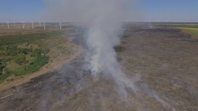 Еко активисти алармират, че пожар унищожава степите край Калиакра