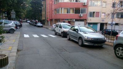 Вчера - 7 септември, пътеките бяха пребоядисани, което е похвално. Няколко часа по-късно обаче по тях бяха паркирали автомобили. Спрели коли имаше и по изходите на пешеходните пътеки. Това затруднява пресичането и принуждава учениците да вървят по пътното платно, възмущава се Петров.