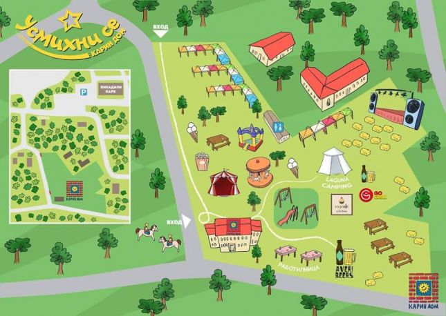 През деня обаче, „Усмихни се Карин дом“ ще запази формата си на любимо семейно забавление. На зелените поляни, сред вече есенните дървета, посетителите ще могат да прекарат цял един ден с любимите си хора. Организаторите съветват да си вземете одеяло за пикник и да освободите трите почивни дни. Забавленията отново са разделени по интереси така, че никой от семейството да не скучае.