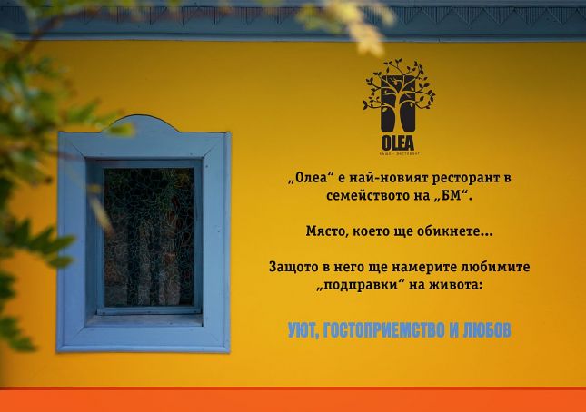 "Олеа" е ресторант, създаден от приятели за приятели в атмосферата на красива средиземноморска вила по пътя за Виница.