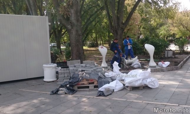 Три модерни чешмички монтират до цветния пазар в района на Катедралата, видя репортер на Moreto.net.