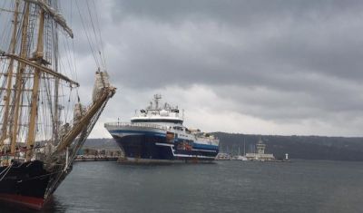 Научноизследователският кораб „Oceanic Endeavour" застана на Морска гара във Варна във връзка с предстоящи проучвания в Черно море, научи Moreto.net.