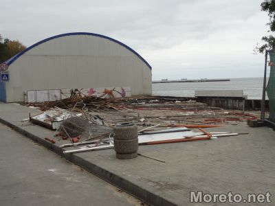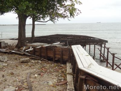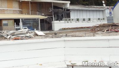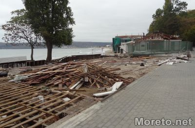Работници са започнали да разрушават няколко от заведенията на Крайбрежната алея във Варна в района от детското езерце към сърф базата, видя репортер на Moreto.net.