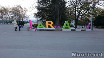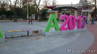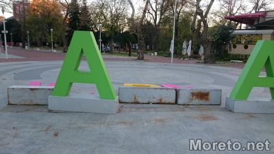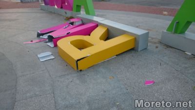 Силният вятър събори и потроши цветните букви от надписите „VARNA 2017”, които се намират на входа на Морската градина и до Градския часовник, видя репотер на Moreto.net.