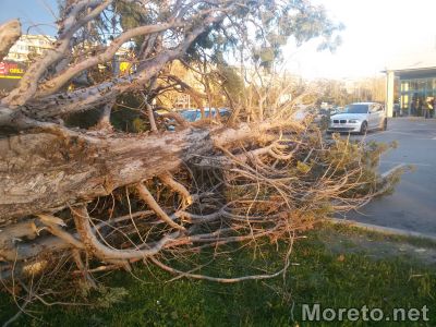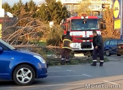 Заради силния вятър дървото се е прекършило от ствола. На място веднага пристигна екип на Гражданска защита, който се зае да изреже стоварилите се на асфалта клони.