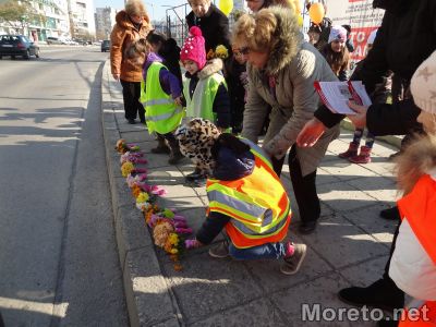 Десетки малчугани от детска градина „Карамфилче“ във Варна почетоха паметта на загиналите деца при пътни произшествия. Възпитаниците на забавачницата пуснаха балони в небето и поставиха цветя на тротоара около пешеходната пътека до стадион „Спартак“. Преди това преминаха няколко пъти през обозначеното място за пресичане на пътното платно с помощта на служители на МВР, предаде репортер на Moreto.net.