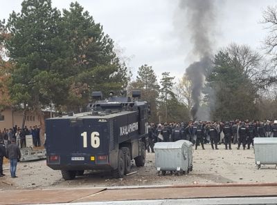 На място има голямо количество служители на реда и водно оръдие. Срещу тях летят камъни, в лагера гори и пожар. Към бежанския център са изпратени подкрепления. На място дойде и екип огнеборци.